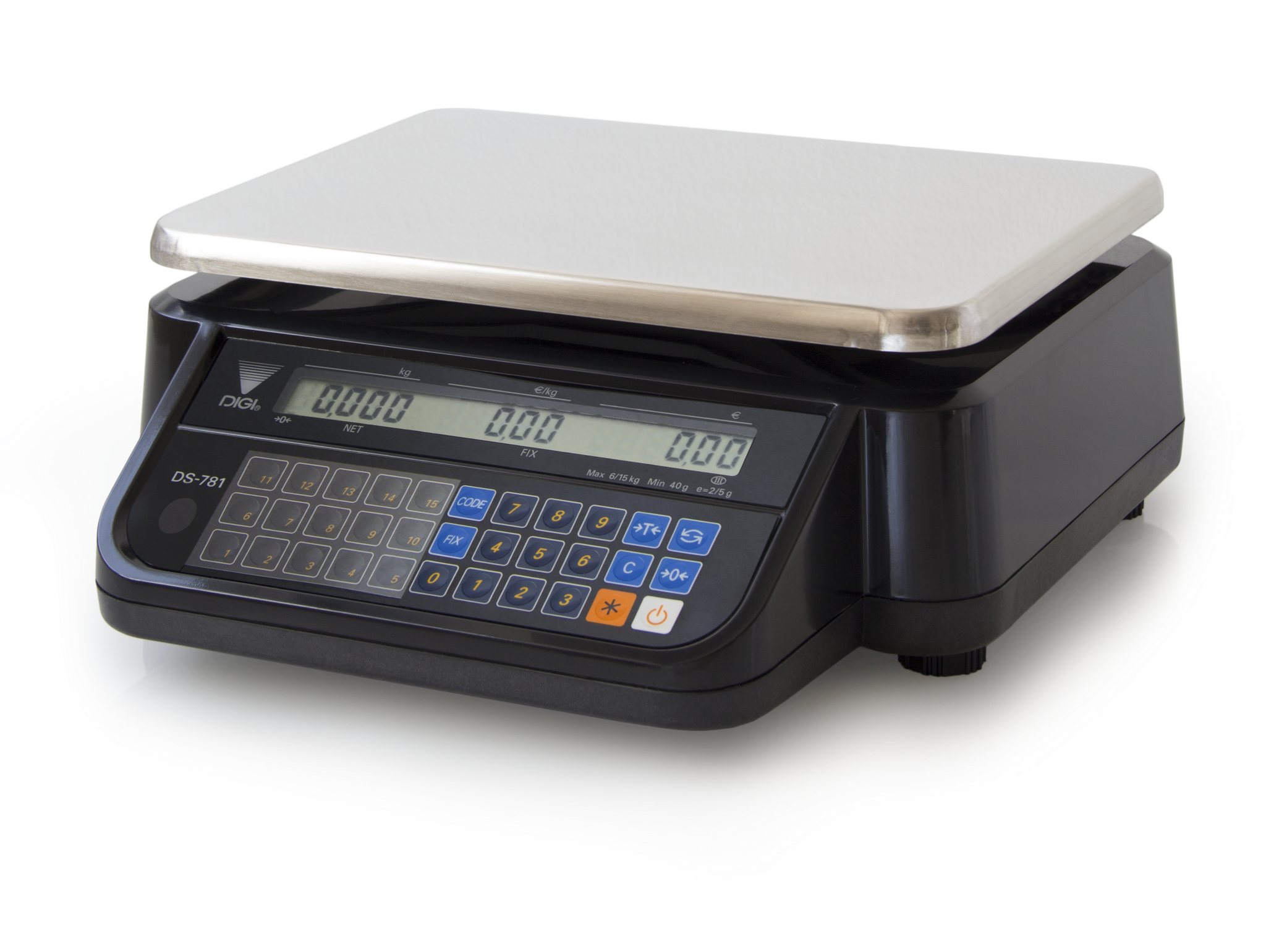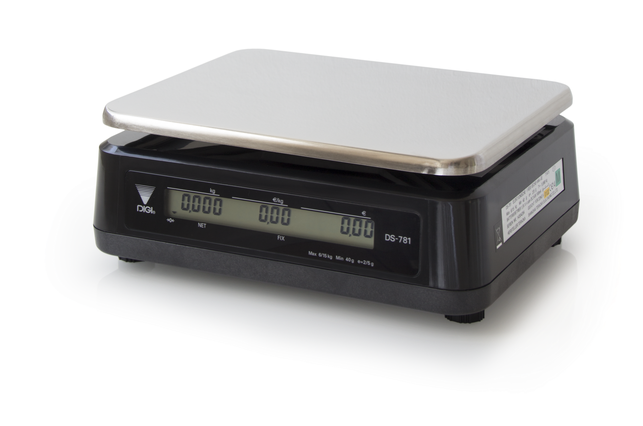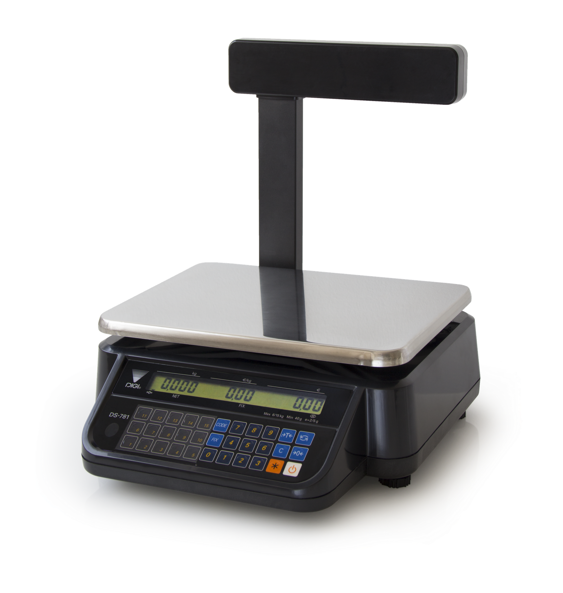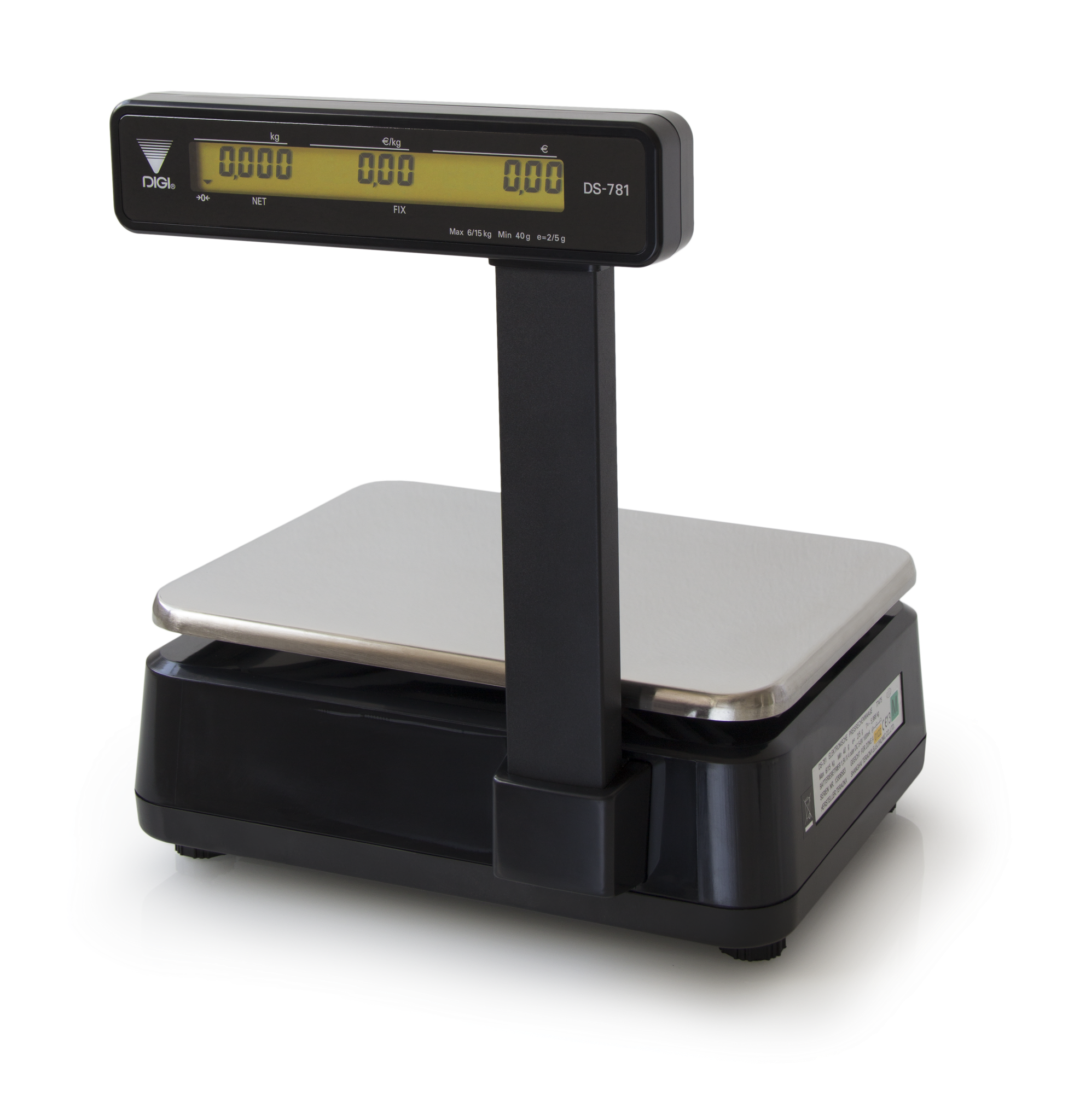 Preisrechnende Waage, Säulen-, oder Pultversion, Netz- und Batteriebetrieb.